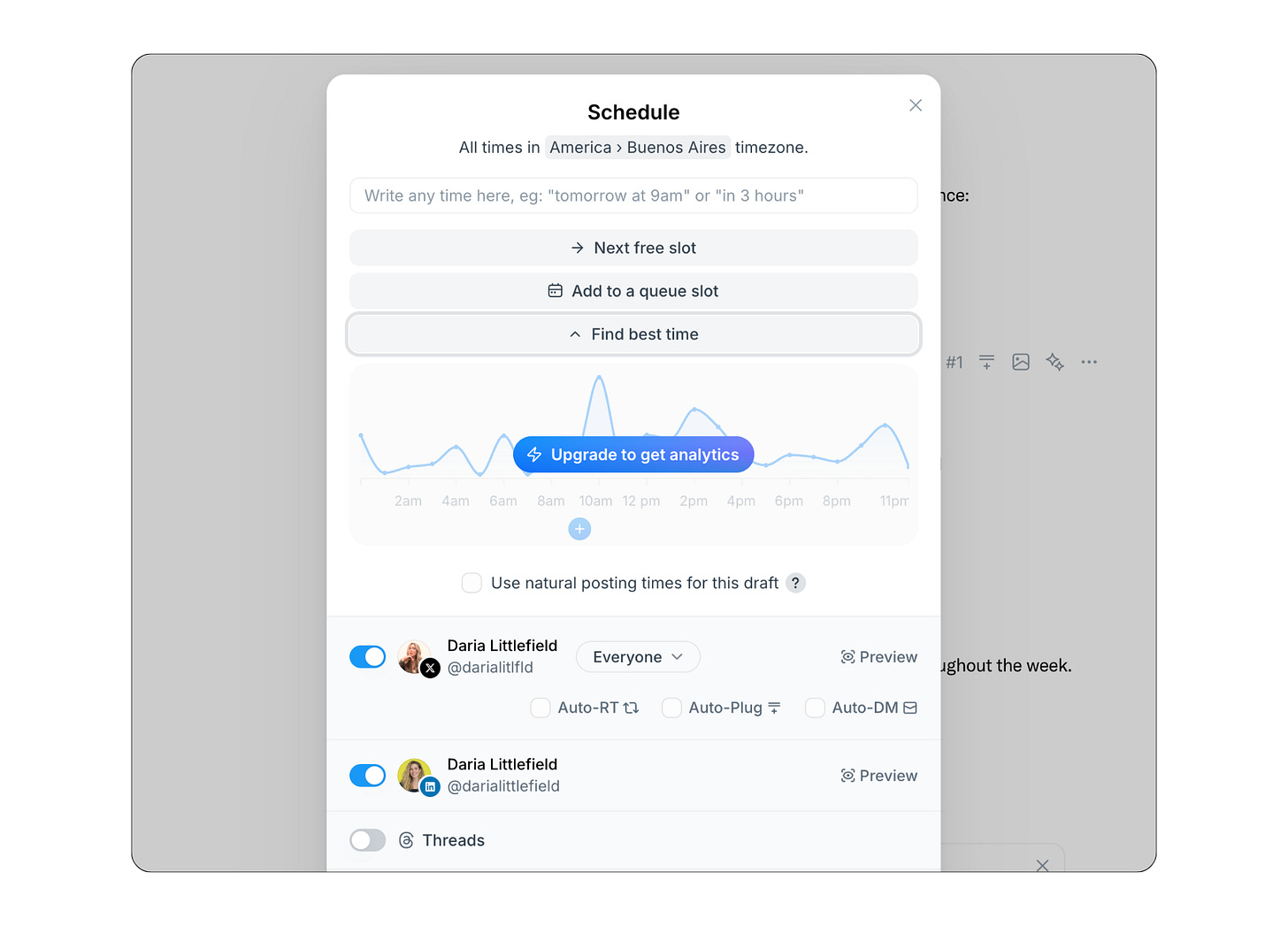 ✔️ Cross-post simultaneously to X, LinkedIn, Bluesky, Threads