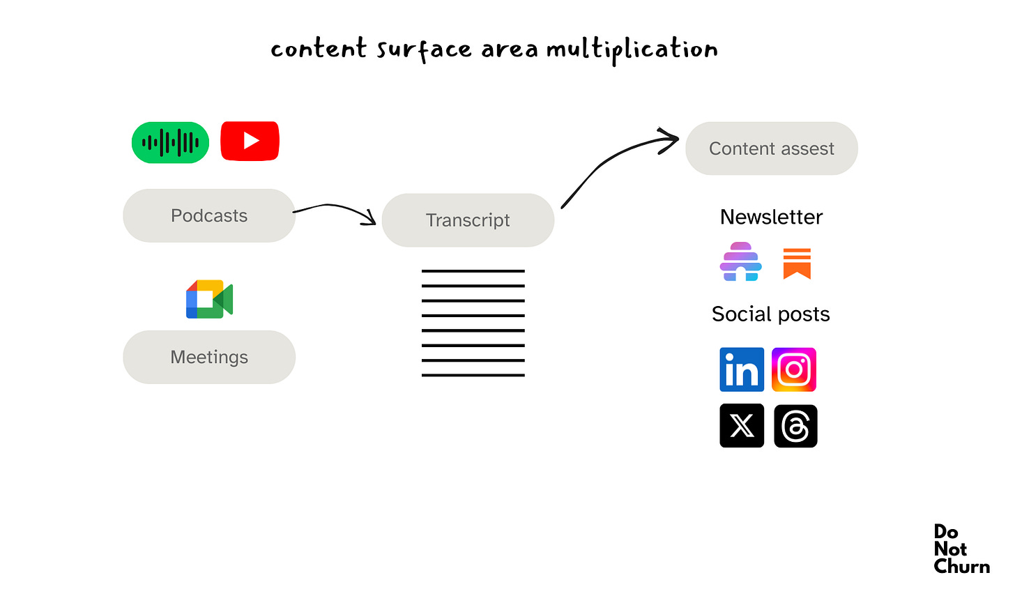 “I want every podcast, client call, and recording I make to turn into a week of published content across every channel. And I don’t want to spend six hours reformatting the same ideas for LinkedIn, the newsletter, and the blog.”