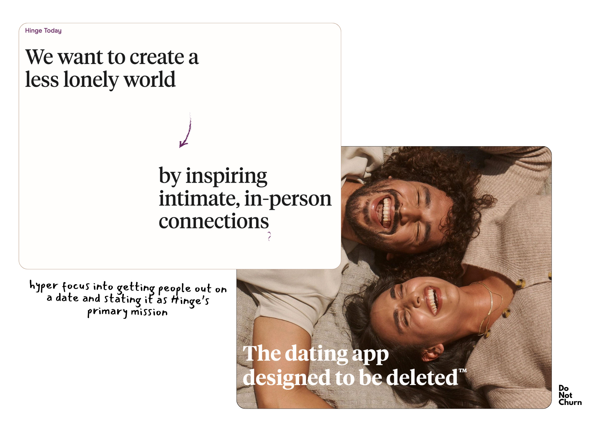 Optimize for outcome, not engagement. Hinge’s “designed to be deleted” works because it aligns business goals with user goals. If your product succeeds when users leave, build the churn loop into the moat - users will pay more and refer more.
